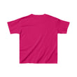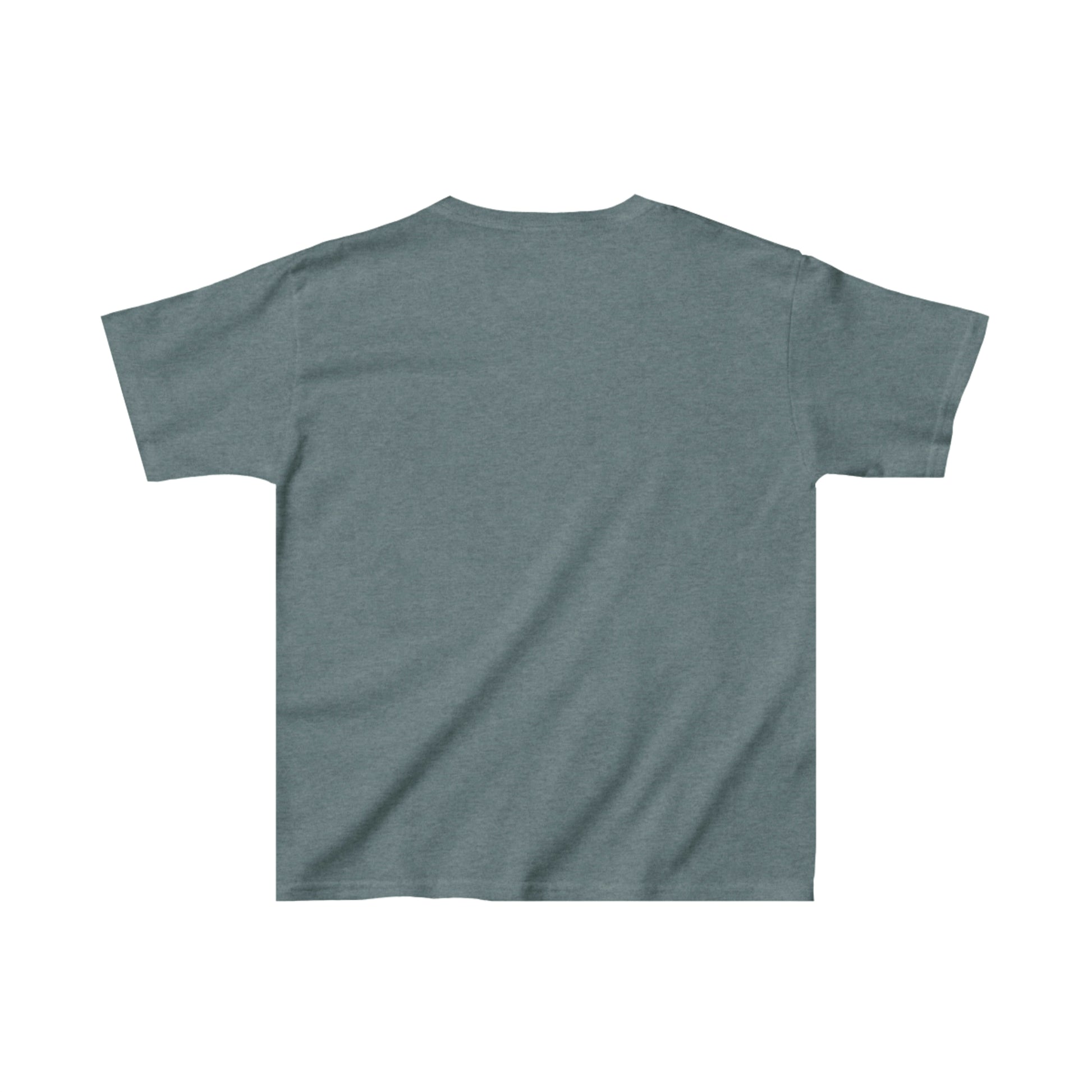 The kids heavy cotton tee is perfect for everyday use. The fabric is 100% cotton for solid colors. Polyester is included for heather-color variants. These fabrics are prime materials for printing. The shoulders have twill tape for improved durability. The collar is curl resistant due to ribbed knitting. There are no seams along the sides.